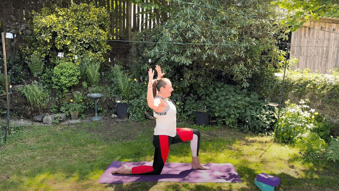 Exploring strength and awareness in your back with seated postures, Cat Cow, Low Lunge and Bridge.